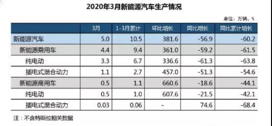2020年3月,隨著行業(yè)內企業(yè)有序復工復產進度加快,3月,新能源汽車產銷表現明顯好于上月,環(huán)比增速迅猛,同比降幅比2月有所收窄。當月產銷量明顯回升,但同比依然呈較快下降,疫情的負面影響仍在持續(xù)。
