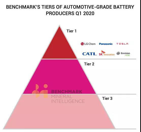 對于第一梯隊供應商(Tier1),Benchmark提出的要求是,有資格為中國以外的跨國汽車OEM/EV生產(chǎn)商提供產(chǎn)品;中國國內(nèi)電動汽車市場供應商;年累積產(chǎn)能>5GWh。