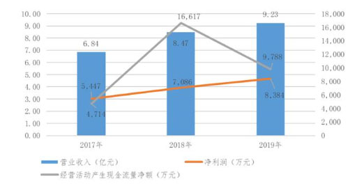 2017—2019年度(下稱報(bào)告期),上能電氣實(shí)現(xiàn)營業(yè)收入分別為6.84億元、8.47億元、9.23億元,凈利潤達(dá)到5446.65萬元、7086.04萬元、8384.29萬元,保持增長趨勢。各期經(jīng)營活動產(chǎn)生的現(xiàn)金流量凈額分別達(dá)到4713.94萬元、1.66億元、9787.65萬元,現(xiàn)金流情況良好。