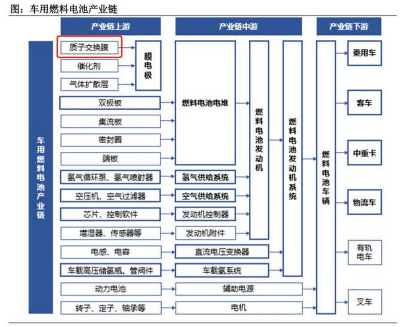 (質(zhì)子交換膜位于燃料電池產(chǎn)業(yè)鏈上游,來(lái)源:億華通招股說(shuō)明書)