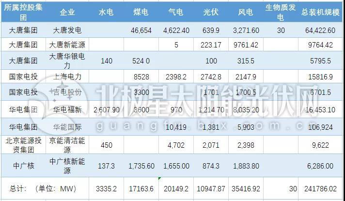 據(jù)北極星太陽能光伏網(wǎng)統(tǒng)計,共有9家國企公布了詳細(xì)的2019年度能源裝機(jī)情況,包括大唐發(fā)電、大唐新能源、上海電力、吉電股份等。