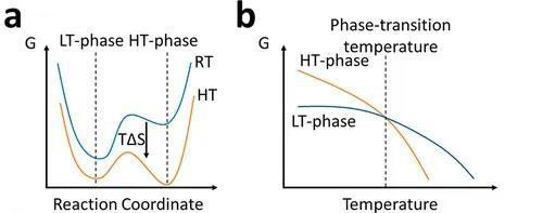 圖 2. (a–b) 固態(tài)電解質(zhì)超離子相變自由能示意圖。