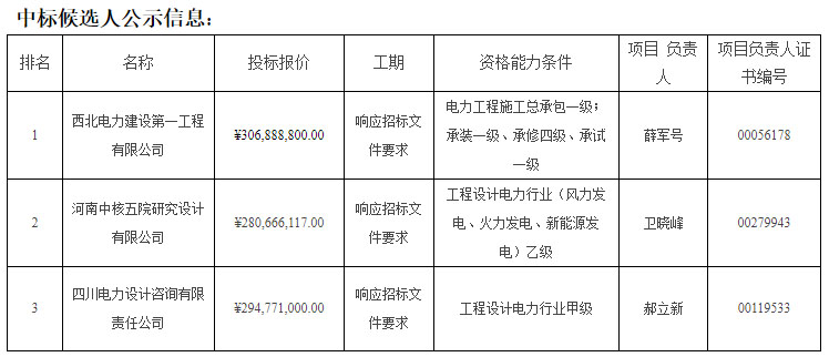 第三名:四川電力設(shè)計(jì)咨詢有限責(zé)任公司,折合單價(jià)2.95元/W。