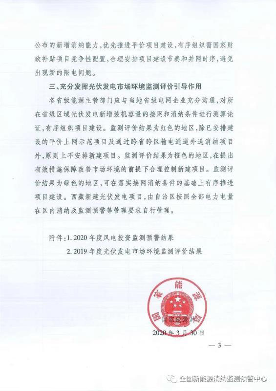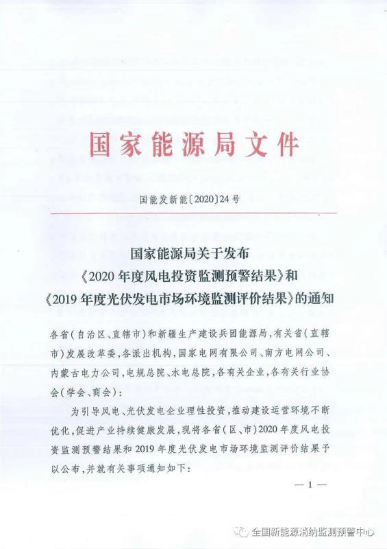 附:國(guó)家能源局關(guān)于發(fā)布《2020年度風(fēng)電投資監(jiān)測(cè)預(yù)警結(jié)果》和《2019年度光伏發(fā)電市場(chǎng)環(huán)境監(jiān)測(cè)評(píng)價(jià)結(jié)果》的通知
