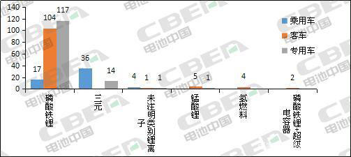 從技術(shù)路線來看,搭載磷酸鐵鋰電池的車型占比78%(近8成),達(dá)238款;搭載三元電池的車型有50款,占比16%;搭載錳酸鋰電池和未注明類別鋰離子電池的車型分別有6款,占比分別為2%;搭載氫燃料電池車型有4款;搭載磷酸鐵鋰電池+超級(jí)電容器的車型有2款。