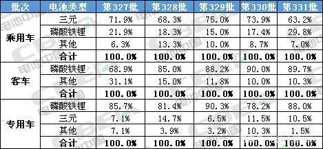 圖3:第327-331批公告不同車型配套電池技術(shù)路線占比