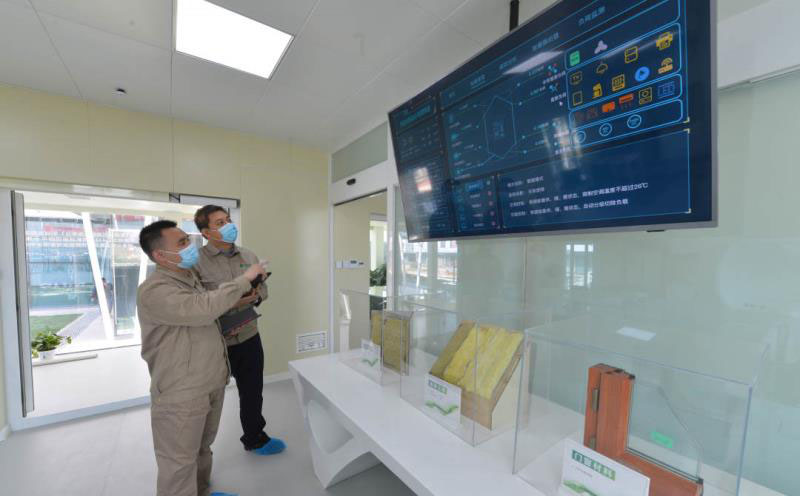 這座135平方米的“0+小屋”,最大限度利用了屋頂、路面等可用空間,鋪設(shè)了60塊光伏板,光照條件較好情況下,每天可發(fā)出60度電,完全做到了建筑用能自給自足,并實(shí)現(xiàn)余電上網(wǎng),成為區(qū)域分布式電源。同時(shí)配備了零能耗建筑運(yùn)行管理系統(tǒng)和40千瓦時(shí)的儲(chǔ)能設(shè)備,光伏產(chǎn)生的電能可以儲(chǔ)存起來,在夜間和光照不足情況下向建筑內(nèi)用電設(shè)備進(jìn)行放電。通過創(chuàng)新研發(fā)應(yīng)用家庭能源路由器,實(shí)現(xiàn)綜合能源控制,可以在電量富余情況下,適時(shí)啟動(dòng)調(diào)節(jié)熱水器、洗衣機(jī)等,將電能轉(zhuǎn)換為熱能進(jìn)行儲(chǔ)存,自動(dòng)完成預(yù)定家務(wù)。