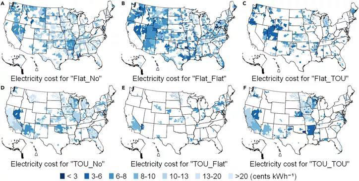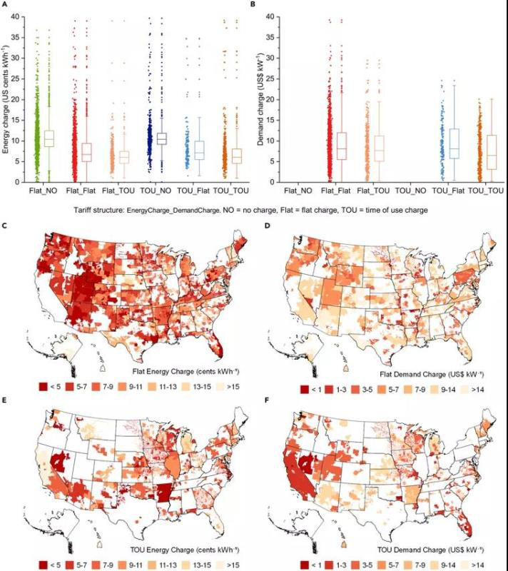 研究發(fā)現(xiàn),單一固定電費覆蓋面更廣,這意味著與分時電費相比,它們在美國更易獲得。高峰時段的電費較高,而在非高峰時段的電費相對較低。電費結(jié)構(gòu)的差異在很大程度上取決于每個電費的設(shè)計過程以及電費的回收成本,例如輸配電網(wǎng)絡(luò)的安裝和維護。