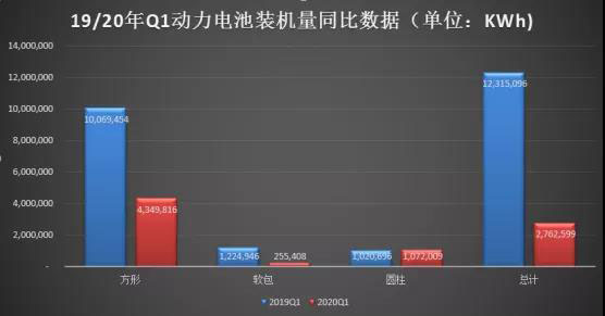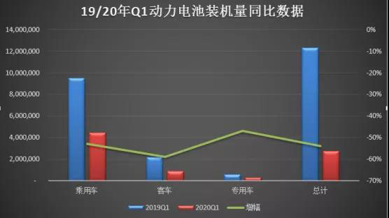 一方面,受新冠肺炎疫情影響,2020年Q1國內(nèi)新能源汽車產(chǎn)銷量雙雙大幅下滑,導(dǎo)致動(dòng)力電池裝機(jī)量出現(xiàn)腰斬,同比下降超過50%。