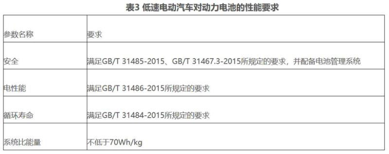 表3 低速電動(dòng)汽車對動(dòng)力電池的性能要求