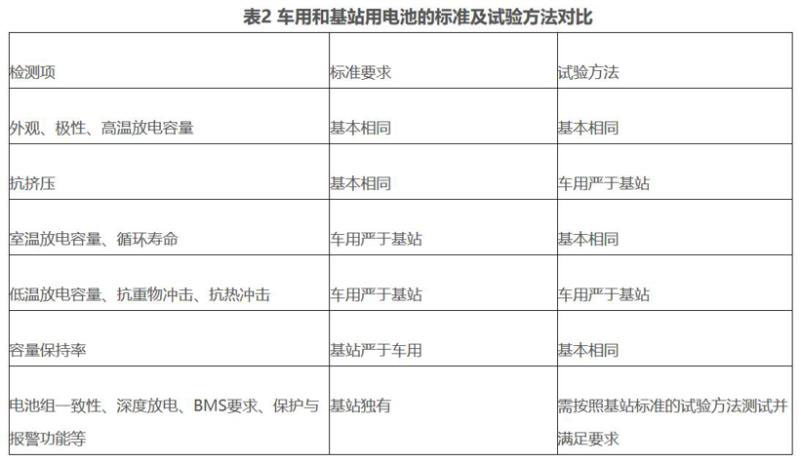 表2 車用和基站用電池的標(biāo)準(zhǔn)及試驗(yàn)方法對比