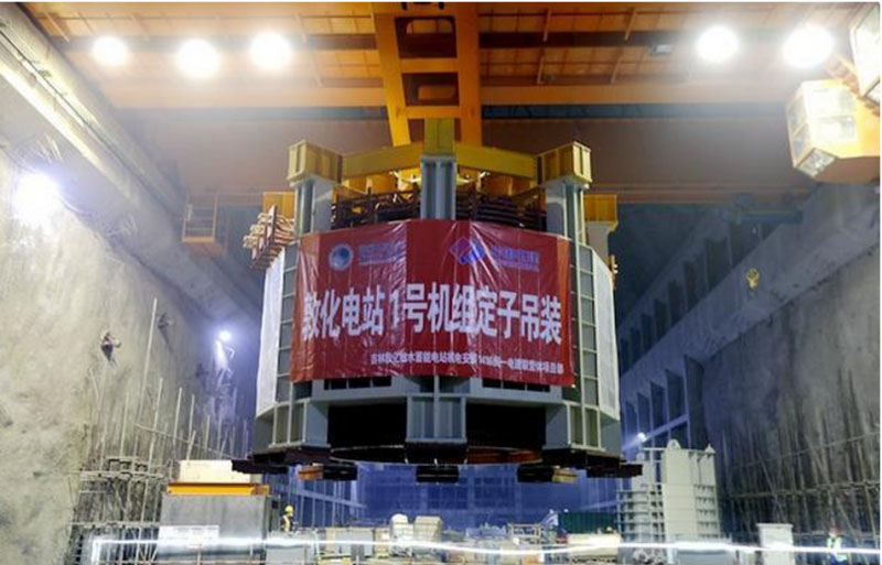 4月16日10時10分,國網(wǎng)新源吉林敦化抽水蓄能電站地下廠房傳來喜訊,1號發(fā)電電動機定子順利吊裝就位,標志著電站機組安裝工作又邁出了關(guān)鍵一步,1號機組投產(chǎn)發(fā)電進入倒計時。