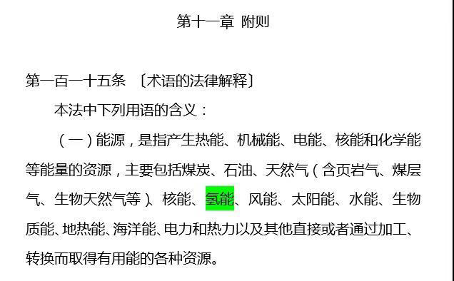 氫能僅在《能源法》附則中出現(xiàn)一次