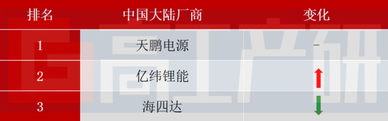 2019年中國二輪車市場用鋰電池企業(yè)排名