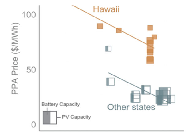 研究發(fā)現(xiàn)美國(guó)混合部署能源項(xiàng)目的購(gòu)電協(xié)議(PPA)價(jià)格近幾年迅速下降