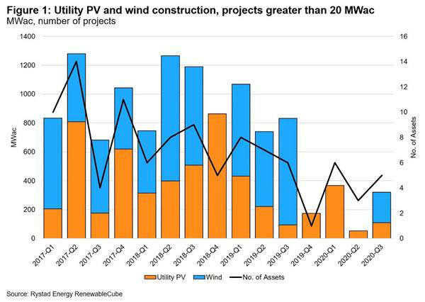 目前,530 MW的光伏發(fā)電和210 MW的風(fēng)能發(fā)電已經(jīng)暫停,這些項(xiàng)目有些或者已經(jīng)開(kāi)始建設(shè),或計(jì)劃在2020年開(kāi)始建設(shè)。新冠肺炎可能會(huì)導(dǎo)致項(xiàng)目延遲或取消。剩余的項(xiàng)目將面臨財(cái)務(wù)風(fēng)險(xiǎn)。