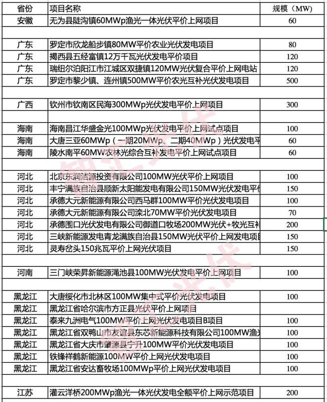 中國(guó)儲(chǔ)能網(wǎng)訊:根據(jù)各省能源局的文件,大多數(shù)省份要在4月30日前完成本省的平價(jià)上網(wǎng)項(xiàng)目申報(bào)。本文介紹了超過(guò)7GW、在2019年下發(fā)的第一批名單之外部分平價(jià)光伏項(xiàng)目名單。