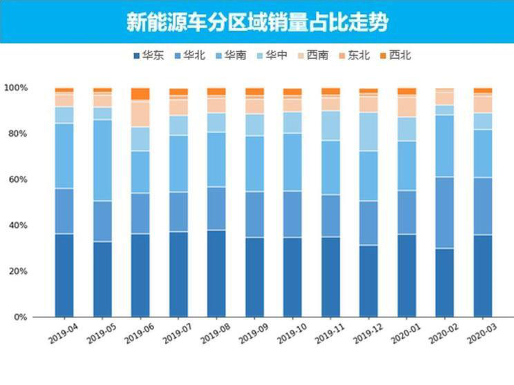 3月新能源車銷量最高的三個(gè)區(qū)域?yàn)槿A東、華北、華南地區(qū),合計(jì)銷量達(dá)到了3.8萬輛,其合計(jì)占比也達(dá)到了82.0%,這些區(qū)域?yàn)槲覈饕履茉翠N售區(qū)域,同樣沿海地區(qū)也是人口密集型區(qū)域,因此有足夠強(qiáng)的汽車消費(fèi)能力。銷量最低的區(qū)域?yàn)闁|北地區(qū),銷量僅為586輛,新能源車在充電及使用方面受到低溫影響,因此東北地區(qū)整體銷量較少。