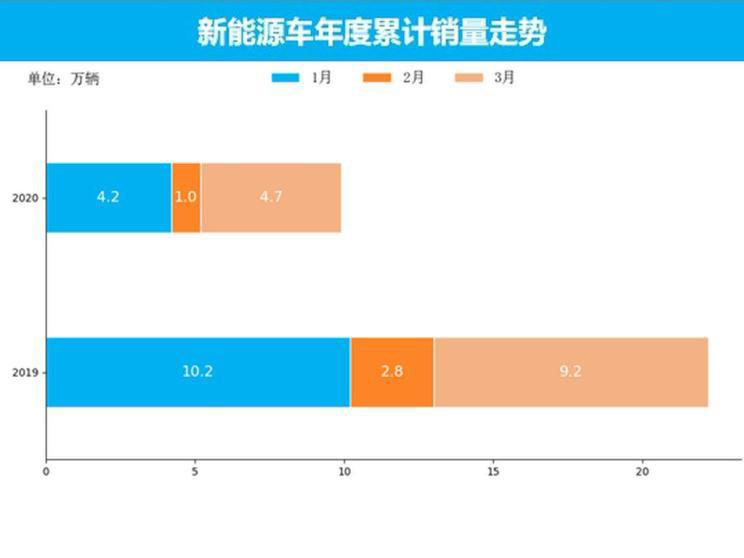 從累計(jì)銷量數(shù)據(jù)來看,2020年1-3月,新能源車?yán)塾?jì)銷量為9.8萬輛,同比累計(jì)下跌55.8個(gè)百分點(diǎn),較去年同期相比,新能源車?yán)塾?jì)銷量大幅下跌。同上個(gè)月累計(jì)變化相比,變化比1-2月累計(jì)提高4.8個(gè)百分點(diǎn)。不過,整體來看,預(yù)計(jì)接下來的市場增長并不十分樂觀。