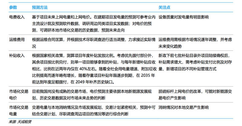 在電站估值方面主要分為收益法、成本法和市場(chǎng)法三大類(lèi),但由于在客觀上受到資源條件、地理環(huán)境、消納能力等諸多因素的制約,在電站估值中通常采用收益法作為主要估值方法,以市場(chǎng)法為輔。