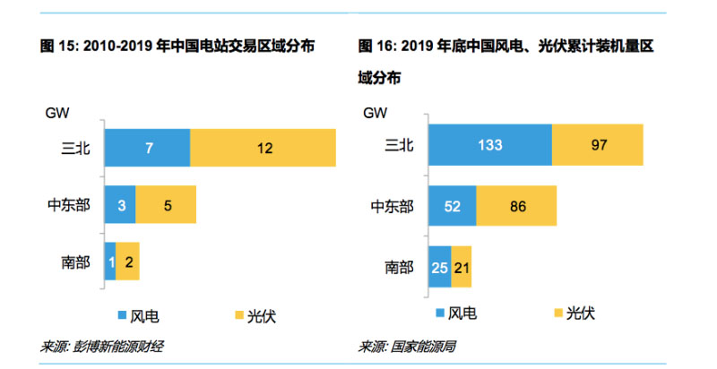 十年來(lái),我國(guó)新能源電站交易主要集中在“三北”區(qū)域,累計(jì)交易規(guī)模為18.4GW,全國(guó)占比為65%,其次是中東部地區(qū),累計(jì)規(guī)模為7.4GW,占比26%,而南方地區(qū)交易最少,僅為2.5GW,占比9%。但近幾年來(lái),電站交易區(qū)域呈現(xiàn)向中東部地區(qū)轉(zhuǎn)移的趨勢(shì),隨著特高壓通道助力“三北”消納困局,熱門(mén)區(qū)域仍將重返“三北”地區(qū)。