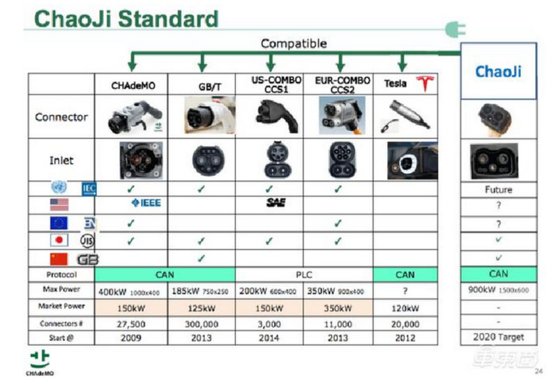 在這套標(biāo)準(zhǔn)下,充電器和電纜的體積都將會縮小,采用了和GB / T協(xié)議相同的插頭,將能夠兼容此前的CHAdeMO版本、GB / T、CCS等不同標(biāo)準(zhǔn)的快充系統(tǒng),未來還可能會適配特斯拉。