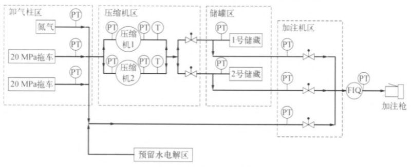 圖11.氫氣長管拖車供氫加氫站工藝流程