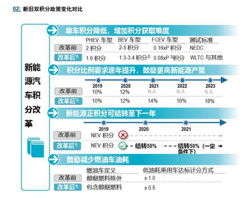 回顧2015年至2018年,新能源車政策以驅(qū)動消費端的政 策為主,在此期間消費者受到購車補(bǔ)貼、牌照限制和購 置稅減免等措施影響,催生出一部分需求。但來自供給 端的產(chǎn)品性能提升步伐卻相對較慢,與消費者的期待仍 然存在差距。如今我們可以看到,新能源車政策已經(jīng)開 始向更廣泛的供應(yīng)鏈環(huán)節(jié)延伸。
