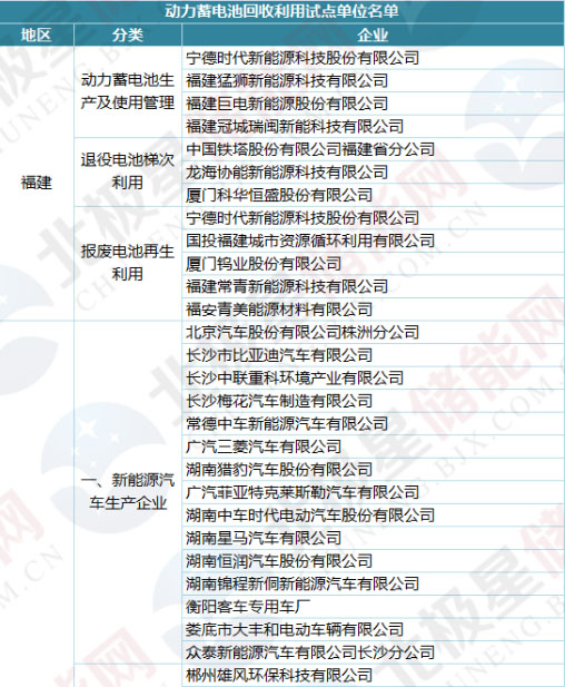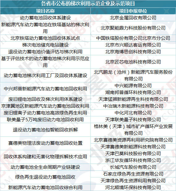 表3:動(dòng)力電池回收梯次利用試點(diǎn)企業(yè)