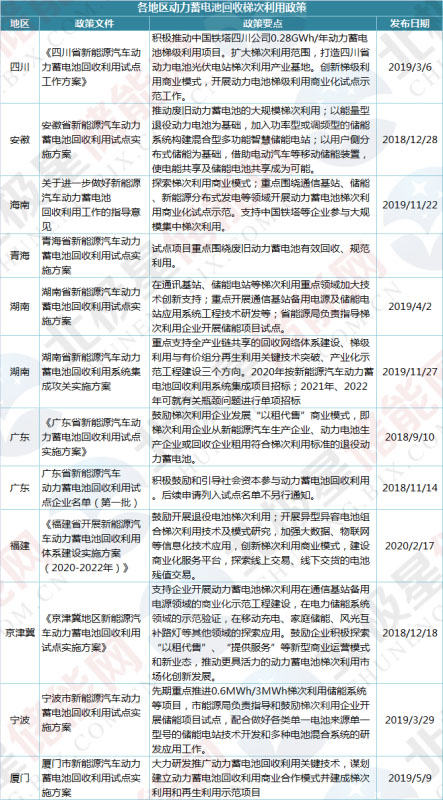 表1:動(dòng)力蓄電池回收梯次利用政策