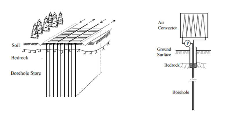 基巖是陸地表層中的堅硬巖層,可作大型建筑工程的地基。有資料顯示,基巖儲能是利用在地下的基巖上打孔,將熱量儲存在基巖中,待需要時再將熱量放出,可搭配太陽能系統(tǒng)完成,適用于大規(guī)模長時間的、季節(jié)性的儲能,能量轉(zhuǎn)換過程損耗較少、轉(zhuǎn)化效率高。還有文章指出這種儲能系統(tǒng)適用于建造在熱電聯(lián)產(chǎn)項目附近。
