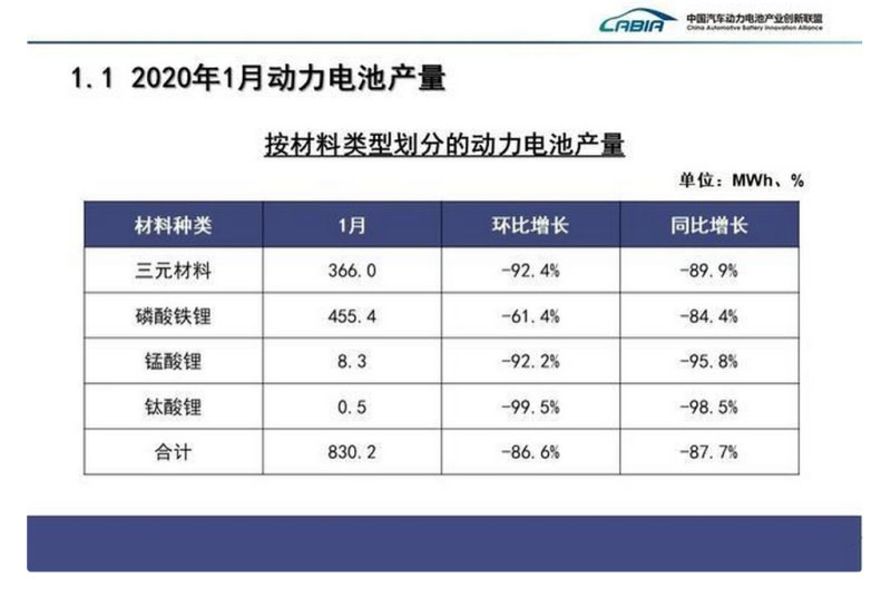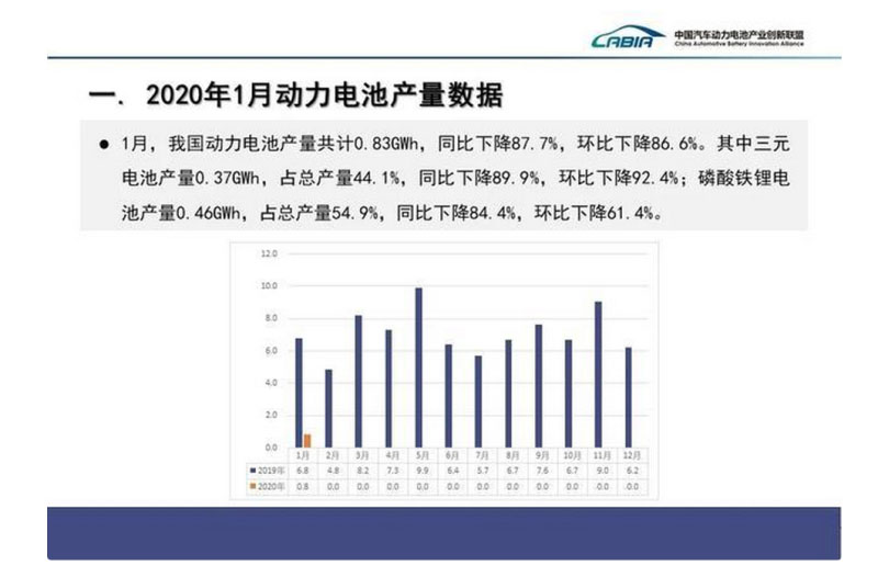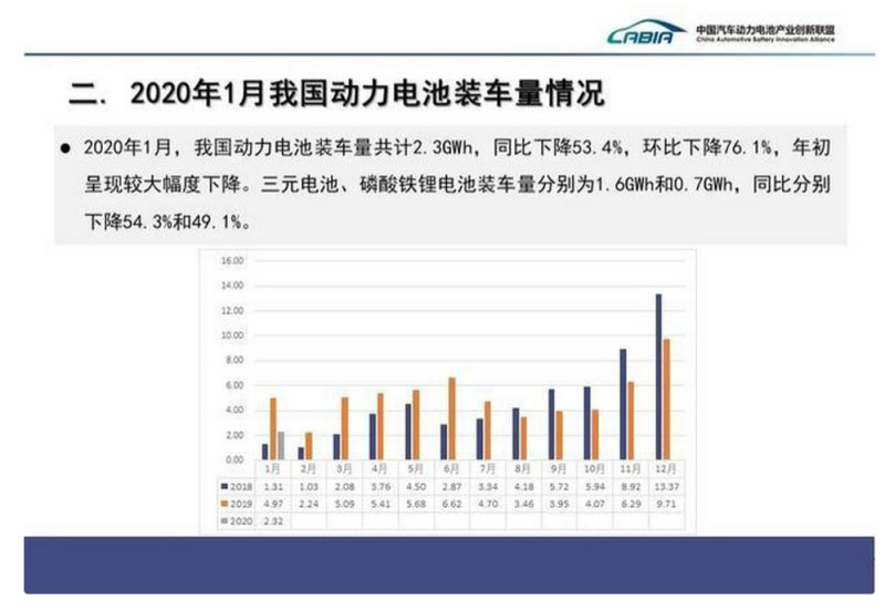 中國(guó)儲(chǔ)能網(wǎng)訊:受新型冠狀病毒疫情影響,中國(guó)汽車工業(yè)協(xié)會(huì)于2020年2月13日召開線上月度信息發(fā)布會(huì),對(duì)1月汽車產(chǎn)銷數(shù)據(jù)進(jìn)行了發(fā)布和解讀。動(dòng)力電池行業(yè)由于較多主流企業(yè)開工較晚,數(shù)據(jù)統(tǒng)計(jì)工作稍有延后。創(chuàng)新聯(lián)盟秘書處經(jīng)后續(xù)統(tǒng)計(jì)完善后,現(xiàn)將2020年1月動(dòng)力電池?cái)?shù)據(jù)發(fā)布如下: