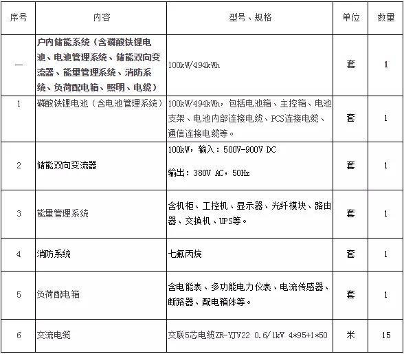 項(xiàng)目概況:廣州城市用電公司根據(jù)2020-2022年白云局配網(wǎng)側(cè)儲(chǔ)能租賃服務(wù)項(xiàng)目需求,擬采購(gòu)分布式電化學(xué)儲(chǔ)能系統(tǒng),系統(tǒng)規(guī)模為100kW/494kWh,主要包括主要包括磷酸鐵鋰鋰電池(含電池管理系統(tǒng))、儲(chǔ)能雙向變流器、能量管理系統(tǒng)、配電箱、消防系統(tǒng)、交流電纜等。根據(jù)建設(shè)工期需要,為保證項(xiàng)目按期完工,需進(jìn)行該項(xiàng)目?jī)?chǔ)能成套設(shè)備招標(biāo)工作,設(shè)備采購(gòu)清單包括但不限于下表所示。