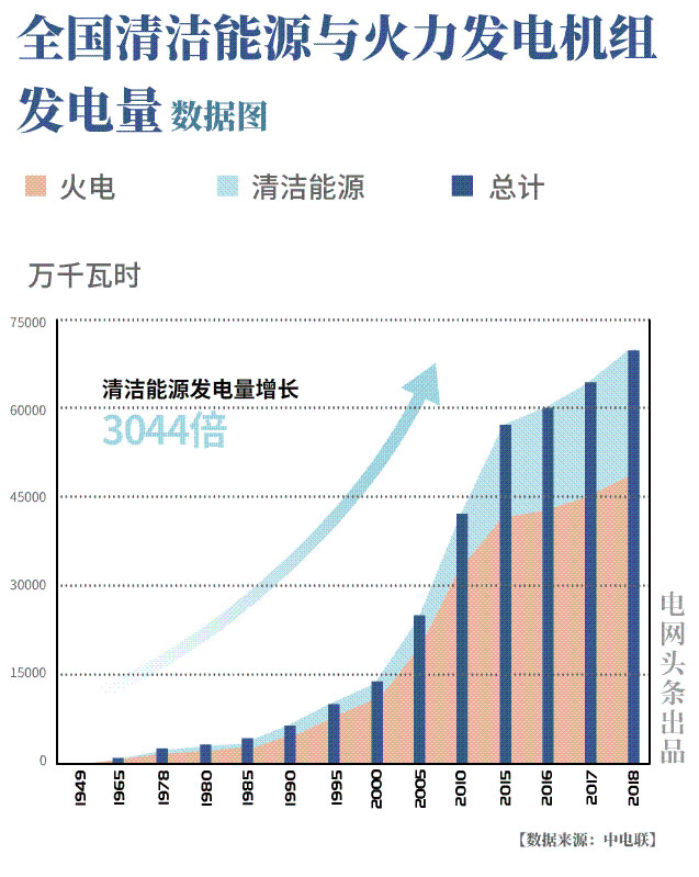 ? 1949年,清潔能源發(fā)電量?jī)H6.8億千瓦時(shí),約占總發(fā)電量16%;