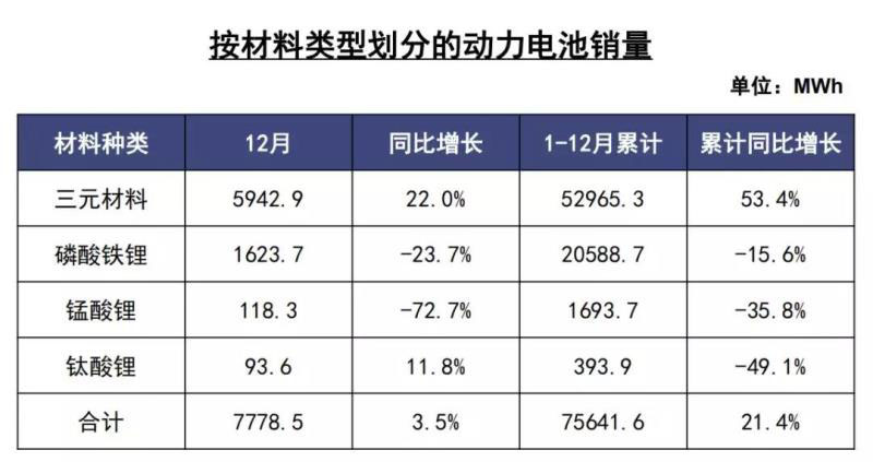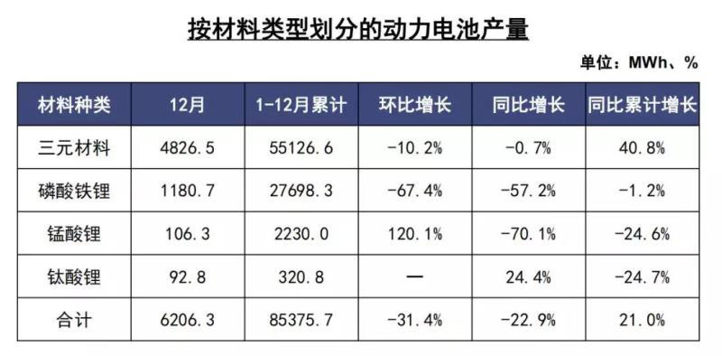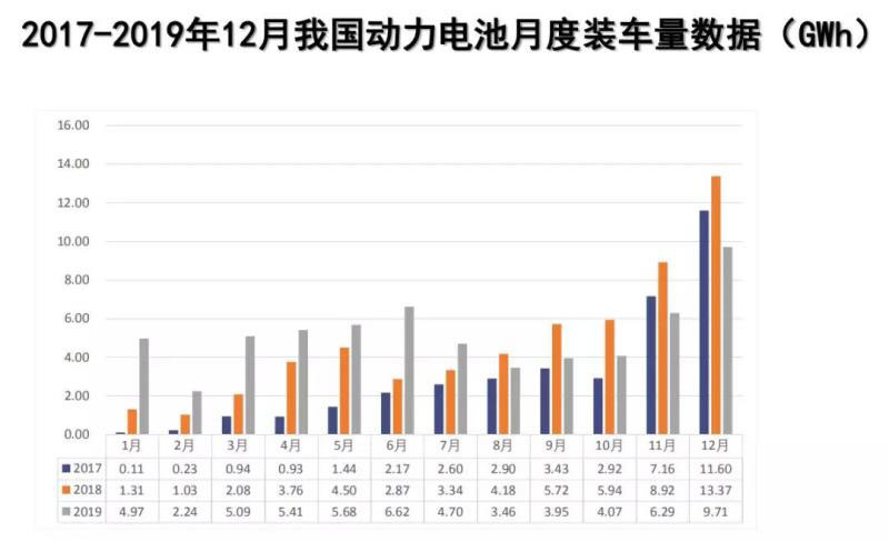 從數(shù)據(jù)來看,2019年12月我國動力電池銷量同比呈現(xiàn)增長趨勢,主要源于三元電池銷量的拉升。另外,2019年12月我國動力電池裝車量有一定幅度的沖量,但熱度較去年同期有所下降。