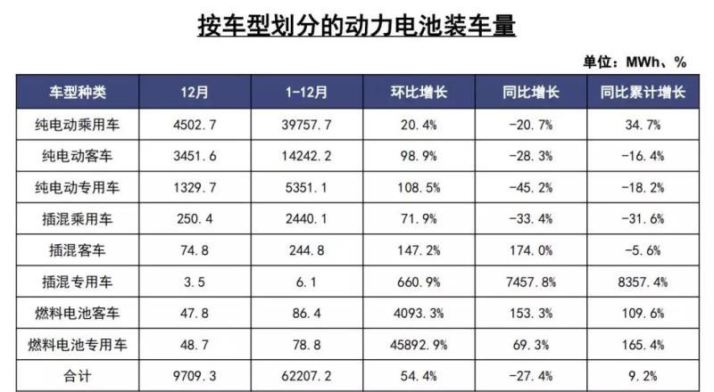 此外,受新能源客車產(chǎn)量大幅上升帶動,2019年12月我國新能源汽車按車型劃分的平均裝車電量63.2kWh,環(huán)比上升8.8%。