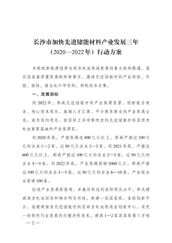 中國儲(chǔ)能網(wǎng)訊:長(zhǎng)沙市人民政府辦公廳印發(fā)《長(zhǎng)沙市加快先進(jìn)儲(chǔ)能材料產(chǎn)業(yè)發(fā)展三年(2020-2022年)行動(dòng)方案》,提出到2022年,形成先進(jìn)儲(chǔ)能材料產(chǎn)業(yè)集聚顯著、創(chuàng)新能力突出、核心技術(shù)領(lǐng)先、高端人才匯聚、平臺(tái)體系健全的產(chǎn)業(yè)發(fā)展生態(tài).成為國內(nèi)領(lǐng)先、在國際上具有影響力的先進(jìn)儲(chǔ)能材料及動(dòng)力電池重要基地和產(chǎn)業(yè)集聚區(qū)。