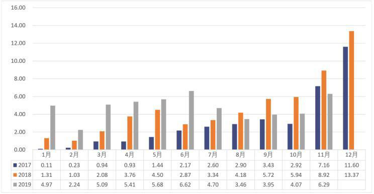 『2017-2019年11月我國動(dòng)力電池月度裝車量數(shù)據(jù)(GWh)』