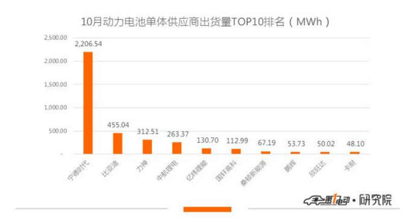 10月寧德時代裝機量為2.21GWh,環(huán)比下跌2%,市場份額與上月基本持平。