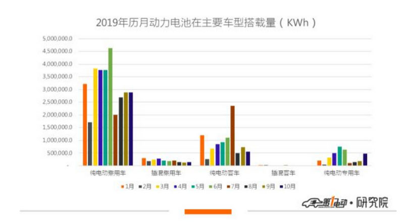 從車輛細分類別來看,10月裝機量主要來源于純電動乘用車,純電動客車裝機量略微下滑,純電動專用車方面有所提升。