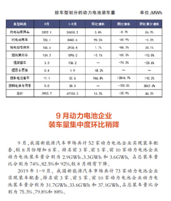 中國(guó)儲(chǔ)能網(wǎng)訊:動(dòng)力電池是電動(dòng)汽車的核心部件之一,其產(chǎn)銷量、裝車量等數(shù)據(jù)可間接反映電動(dòng)汽車市場(chǎng)的冷暖。從這份由中國(guó)汽車動(dòng)力電池產(chǎn)業(yè)創(chuàng)新聯(lián)盟提供的數(shù)據(jù)可以看出,盡管今年前三季度我國(guó)動(dòng)力電池裝車量總體高于去年同期,但在第三季度,也即傳統(tǒng)的汽車銷售“金九銀十”階段,同比卻出現(xiàn)明顯下降。尤其是9月,動(dòng)力電池裝車量同比下降30.9%,創(chuàng)下三年來(lái)最大降幅。這恰與我國(guó)電動(dòng)汽車產(chǎn)銷量連降三個(gè)月的形勢(shì)相符。