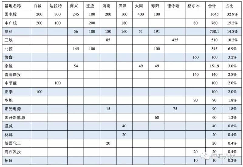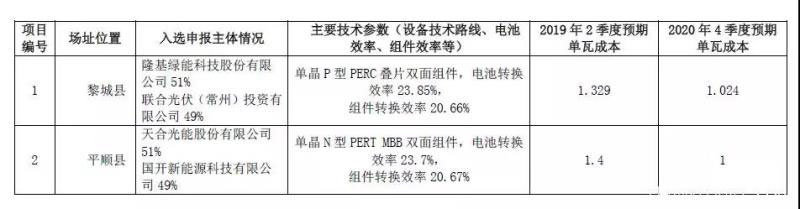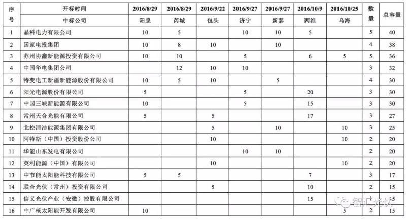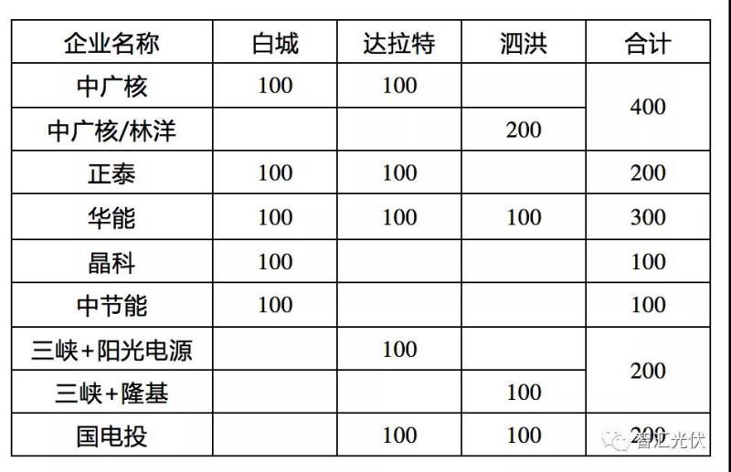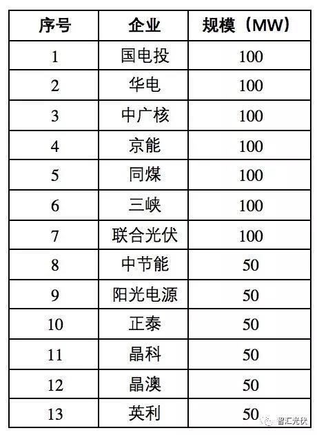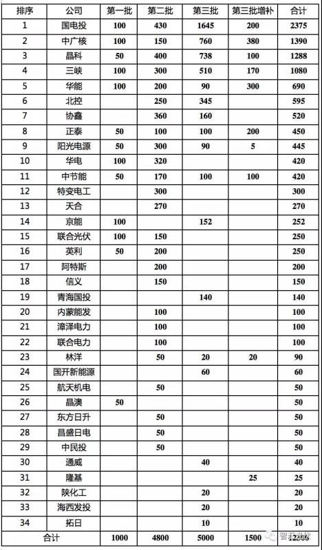 表:第一批領(lǐng)跑者中標(biāo)情況(單位:MW)