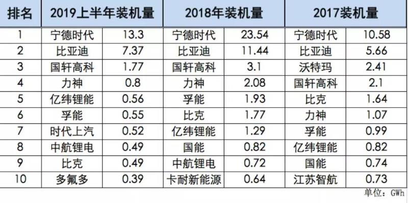 2016年動(dòng)力電池企業(yè)數(shù)量155家,截止2018年底,有實(shí)際裝機(jī)量的企業(yè)還有99家,2019年上半年已經(jīng)降至59家,中小玩家基本已被淘汰殆盡。