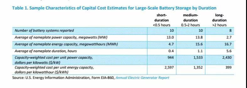 表1. 按持續(xù)時間劃分的大型蓄電池組資本成本估算的樣本特征