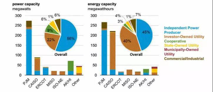 截至2016年底,美國大型電池儲能容量的一半以上是由獨立發(fā)電商(IPP)所有。
