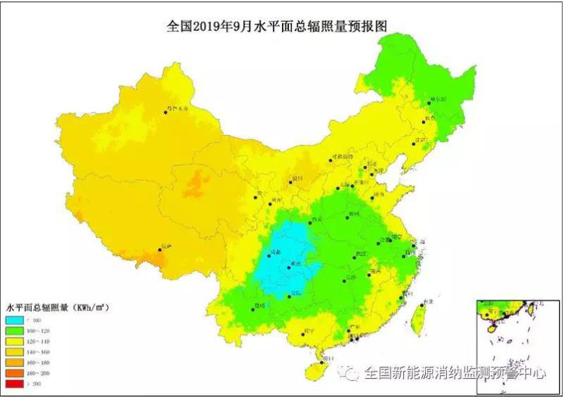 附圖6 全國2019年9月水平面總輻照量預報圖