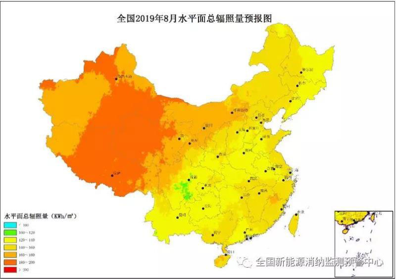 附圖4 全國2019年8月水平面總輻照量預報圖
