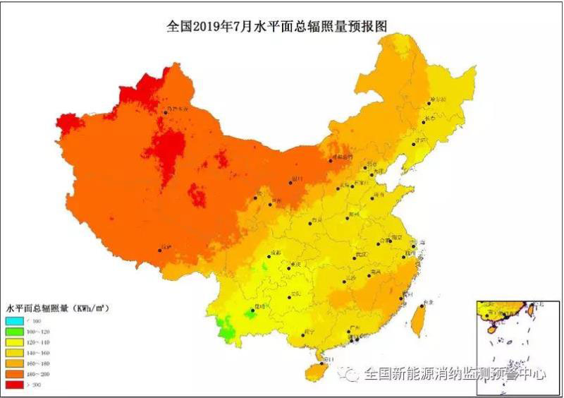附圖2 全國2019年7月水平面總輻照量預報圖