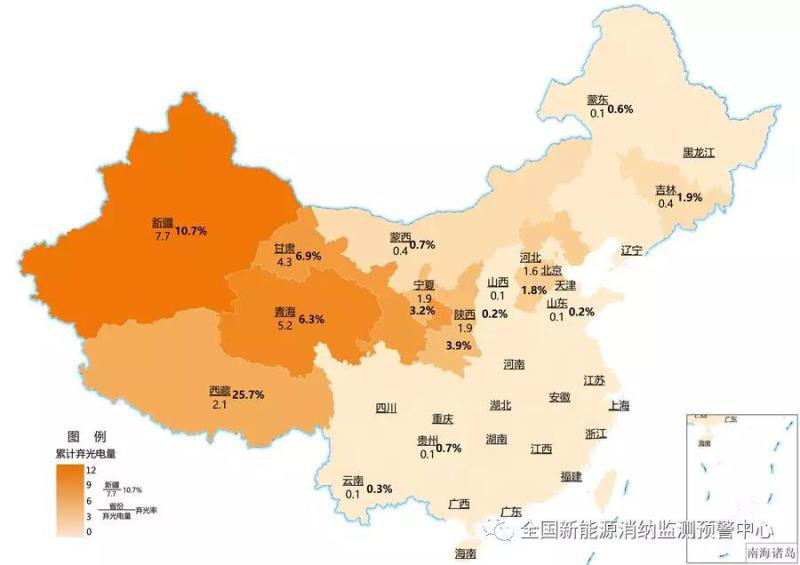 截至6月底各地區(qū)累計棄光電量(億千瓦時)及棄光率