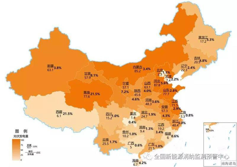 截至6月底各地區(qū)累計光伏發(fā)電量(億千瓦時)及占本地區(qū)總發(fā)電量比重
